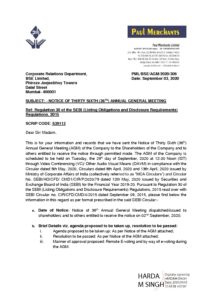 Intimation along with Notice of AGM signed